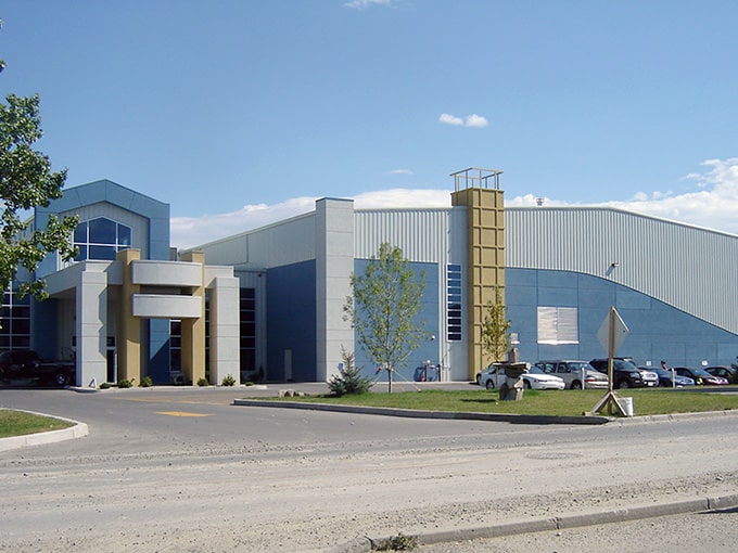 For North Cariboo Air's Calgary base, we designed and built a custom office and hangar, including a mezzanine for extra offices and meeting space. This 25,000 sq. ft. project showcases our expertise in pre-engineered steel frame aviation buildings.